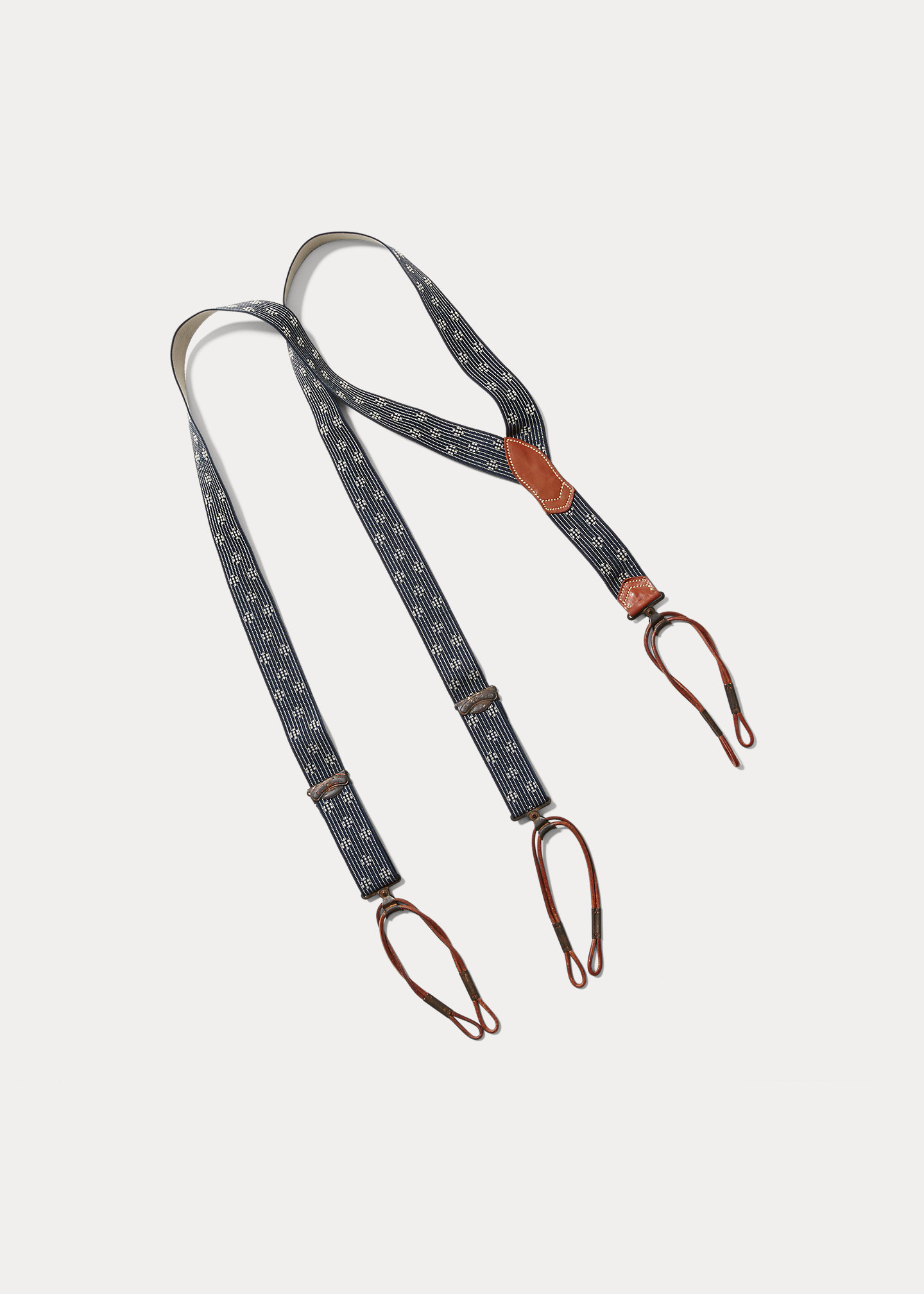 Modeled after turn-of-the-century dress braces. Adjustable straps with custom RRL brass hardware and leather tabs.