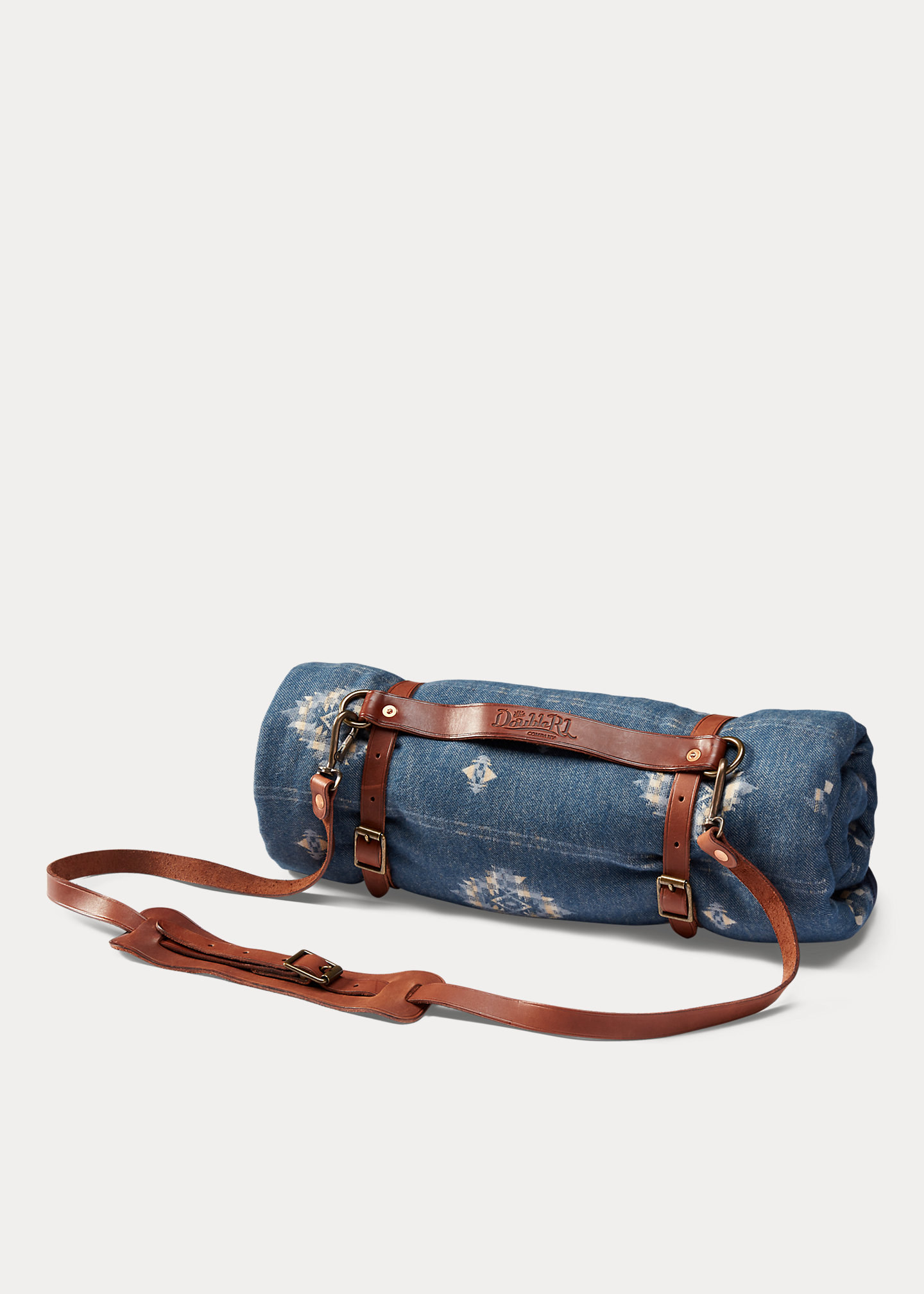 Limited edition of 50. Knit "Double R.L. Co." patch at one corner. Waterproof inner lining. Includes a "RRL"-embossed adjustable harness with leather buckled straps. 69" L x 51" W. Shell: 45% polyester, 30% wool, 15% cotton, 8% acrylic, 2% nylon. Harness: 100% leather. Dry clean. Made in the USA.
