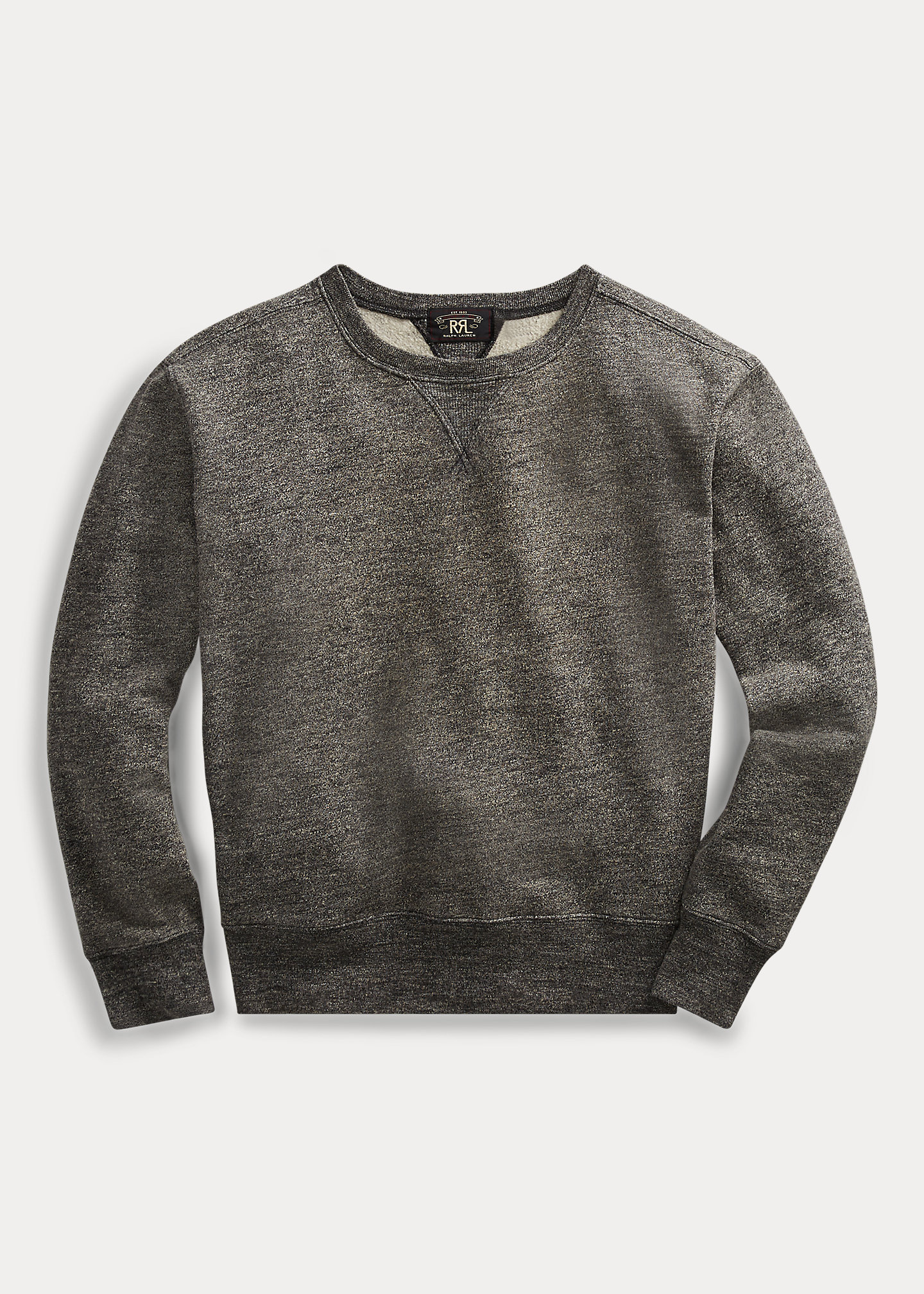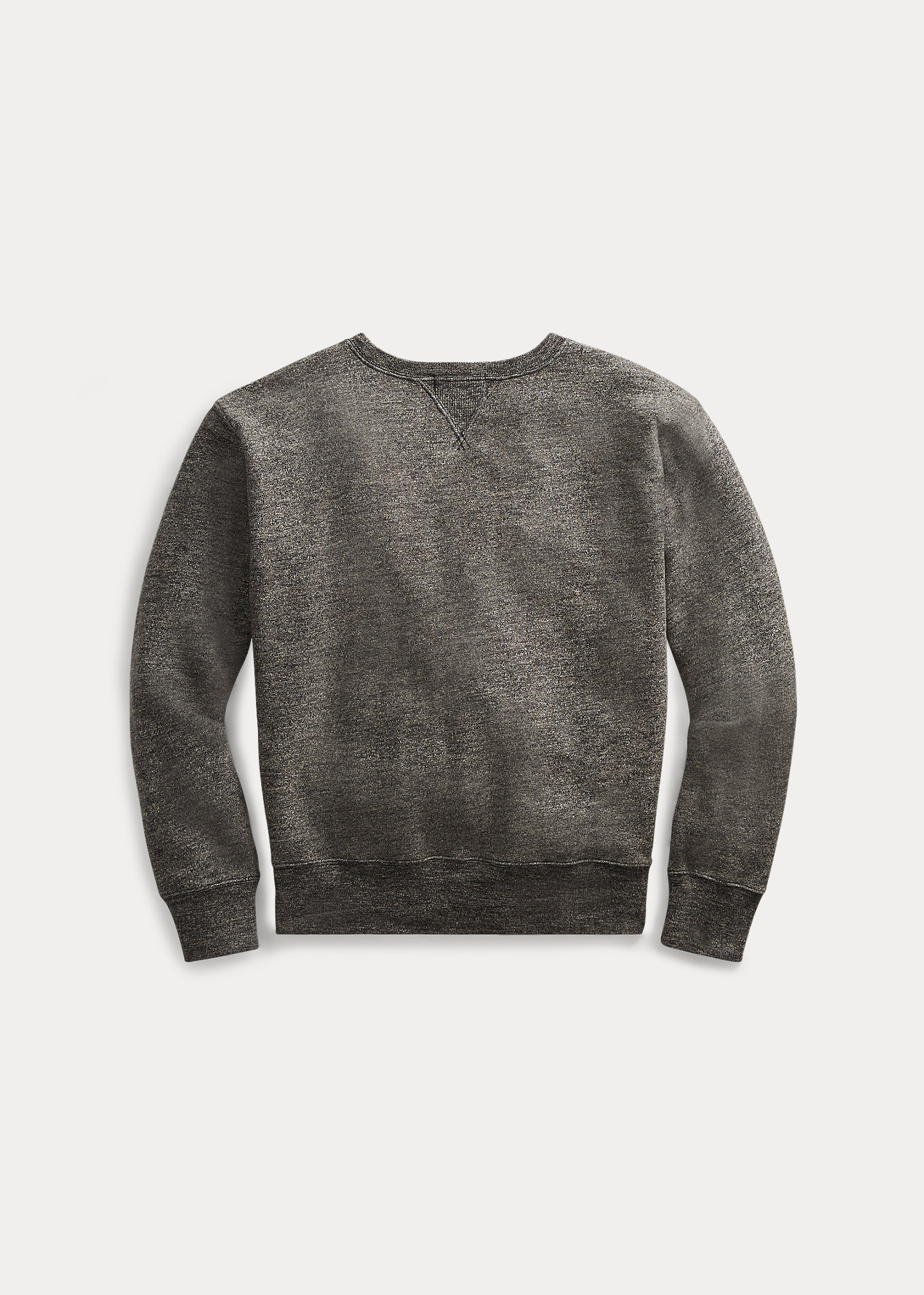 Boxy fit with straight armholes. Size medium has a 25¼" body length, a 20¼" shoulder, a 43" chest, and a 34" sleeve length. Sleeve length is taken from the center back of the neck and changes 1" between sizes. Crewneck with a ribbed double V-inset. Long sleeves with ribbed cuffs. Ribbed hem. Cotton, polyester. Machine washable. Imported.