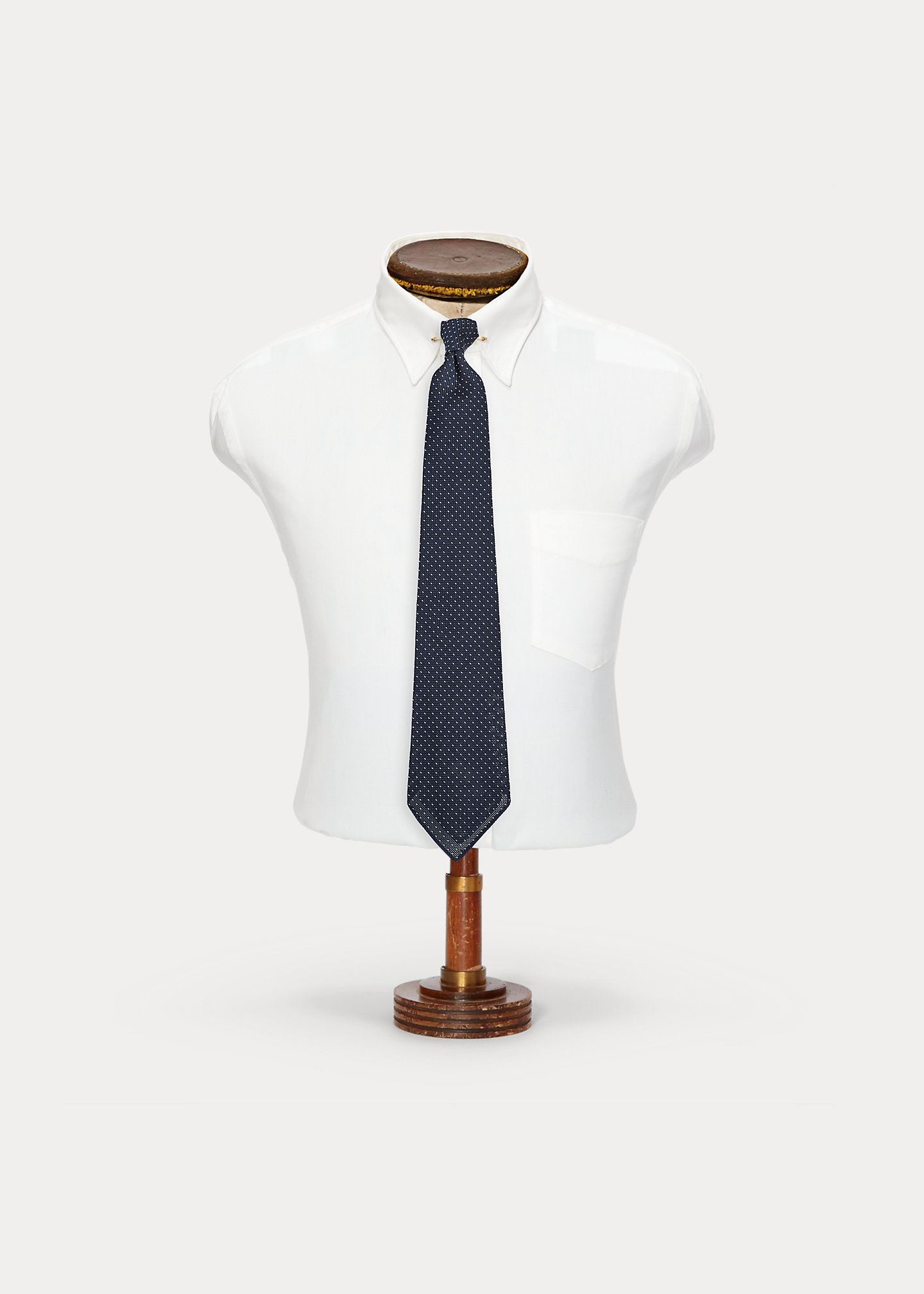 Based on neckwear from the 1940s and '50s. Made from silk grenadine with a polka-dot pattern. Cut on a 45-degree bias so it will never twist or turn. Untipped to maintain its vintage character.