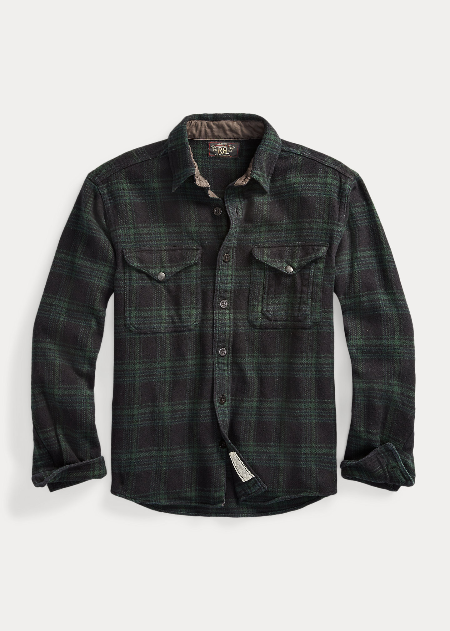 Workshirt made from yarn-dyed cotton. Classic plaid pattern. Utility pockets at the chest. Corozo buttons.
