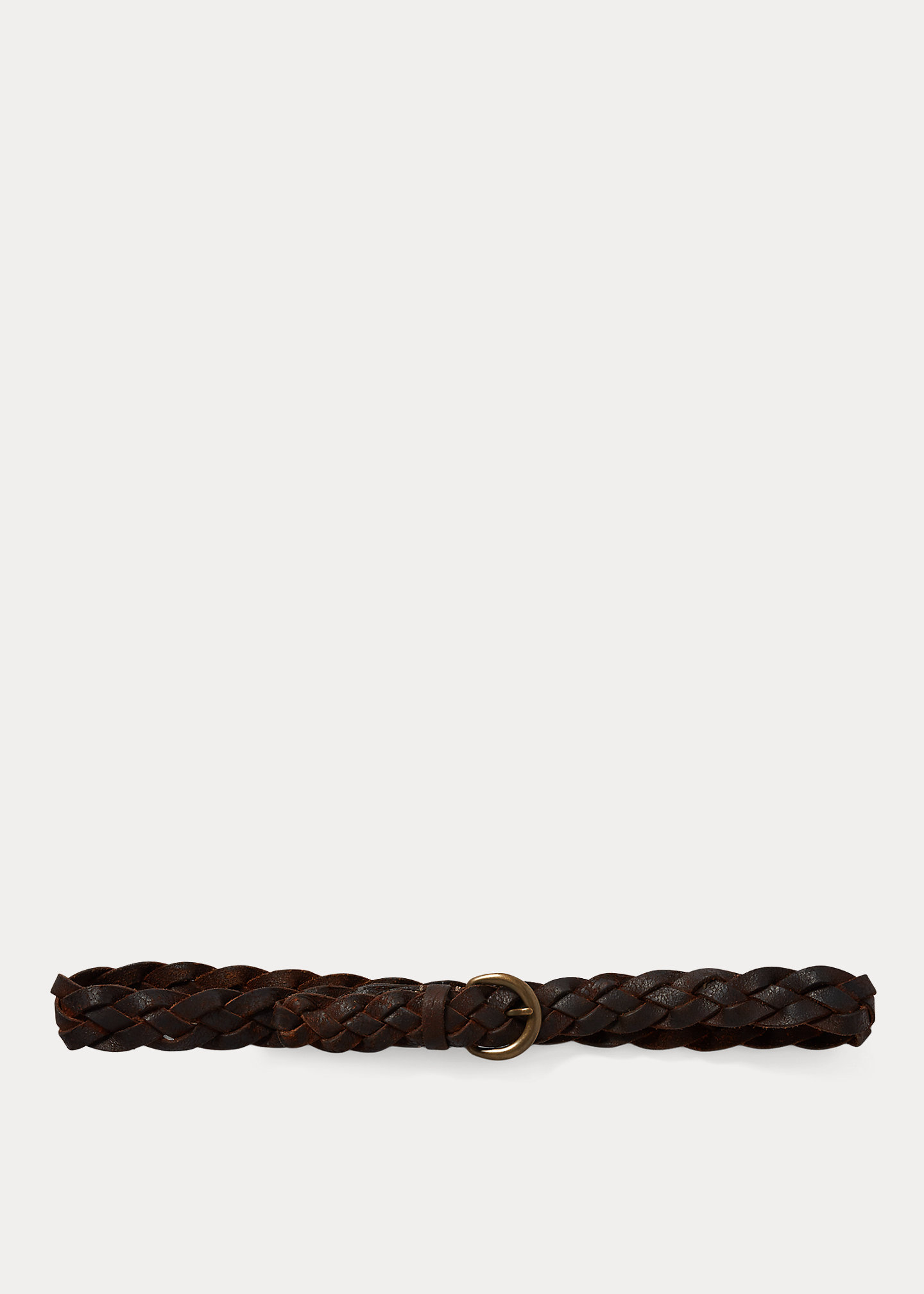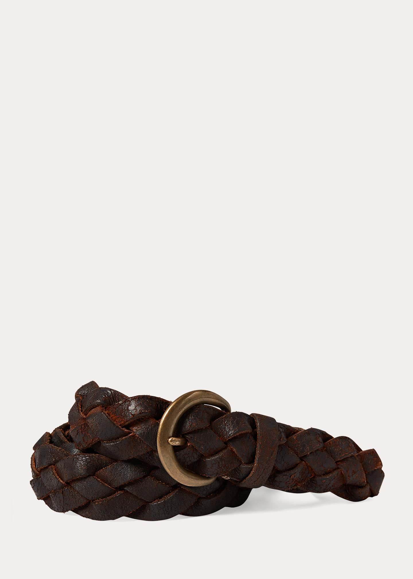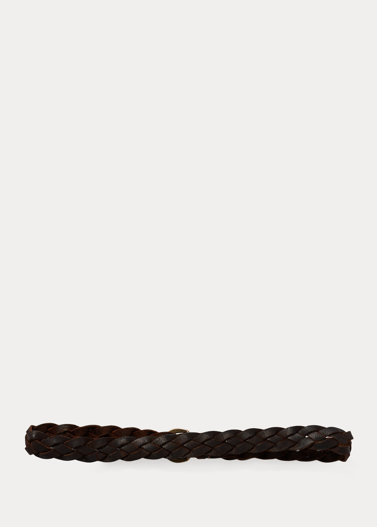 Made in Italy from vegetable-tanned cowhide. Roughout leather is oiled and braided by hand. Finished with a corroded brass buckle.