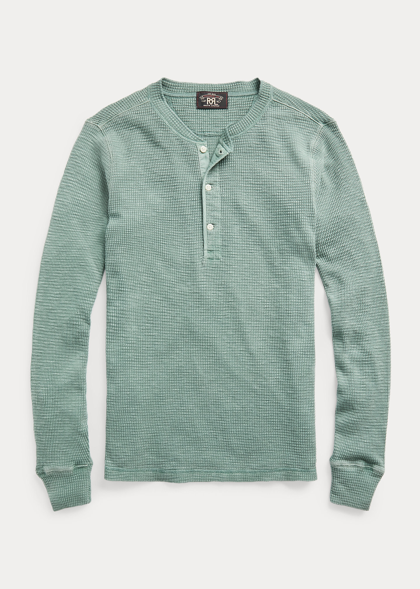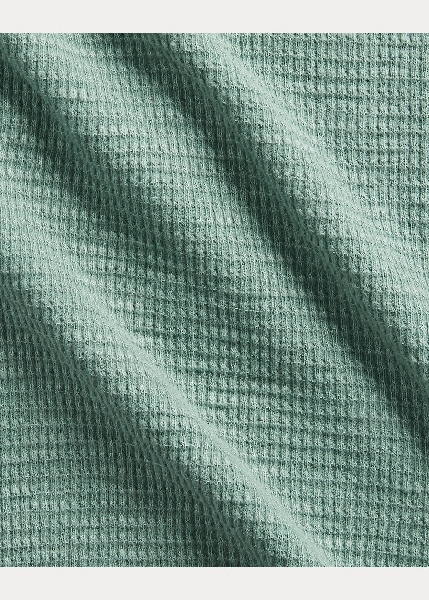 Made from waffle-knit cotton. Garment-dyed and washed for a sun-faded effect. Sateen placket facing. Tonal stitching. Vintage-inspired buttons.