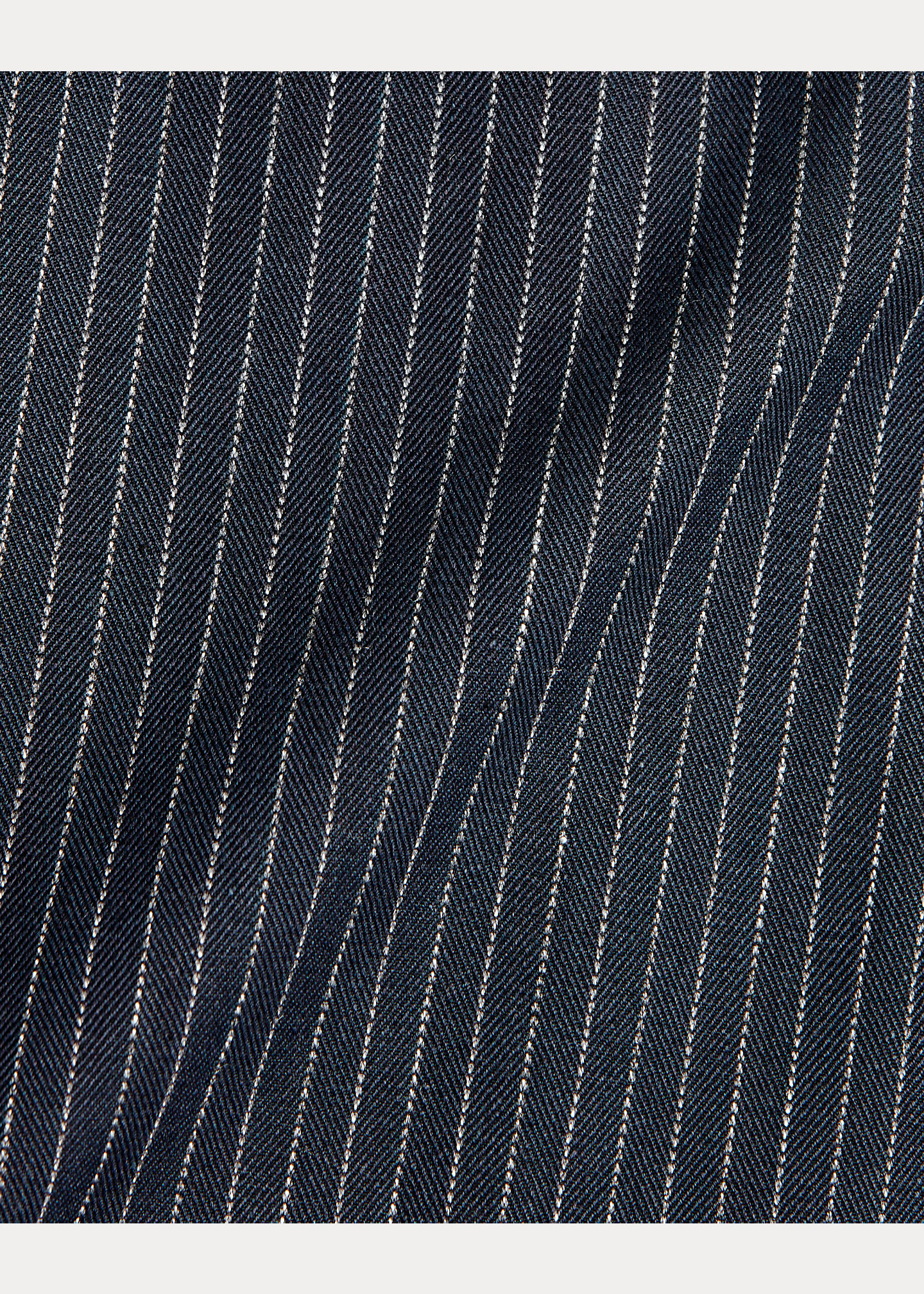 Size 40R has a 29½" back body length, an 18¼" shoulder, and an 18¼" sleeve inseam. Peak lapels. Buttonhole at the left lapel. Two-button silhouette. Three-button cuffs with unfinished buttonholes ready for custom-tailoring. Left chest welt pocket. Ticket pocket. Two front waist flapped pockets. Interior welt pockets. Lined at the back yoke and the sleeves. Alterations available in Ralph Lauren stores. Shell: cotton. Body lining: cotton, viscose. Sleeve lining: cupro. Dry clean. Made in Italy. Dyed with true indigo, which may rub off onto fabrics, leather, and upholstery. Model is 6'1"/185 cm and wears a size 40R.
