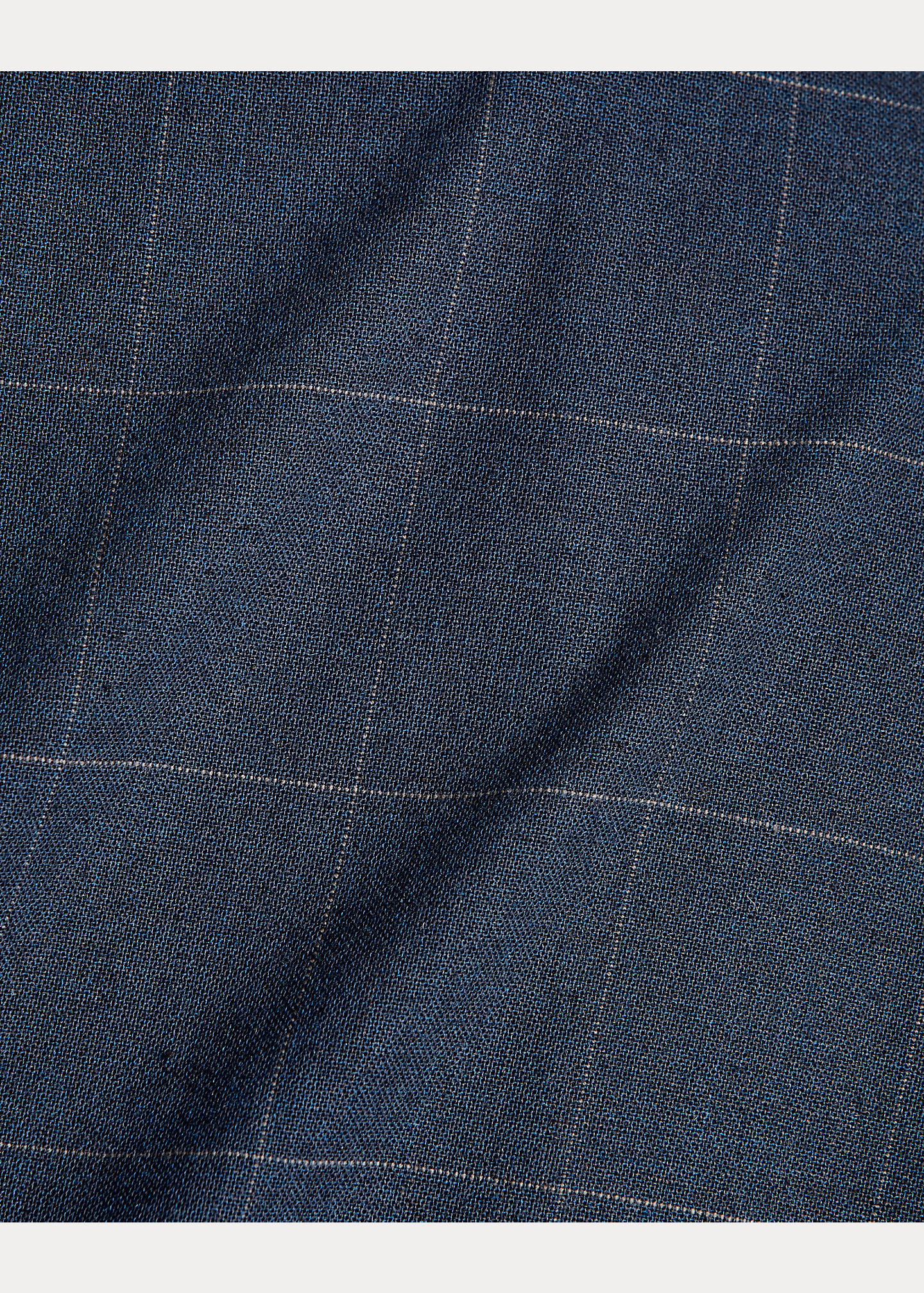 Made from Japanese fabric woven with cotton, wool, and linen. Windowpane check pattern. Dyed with indigo. Adjustable buckled back. Coordinating sport coat and pants available.
