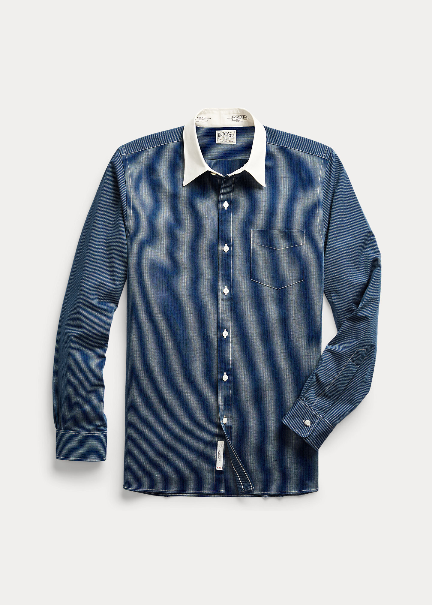 Slim-fitting shirt made from lightweight woven cotton. Subtle striped pattern. Contrasting point collar. Genuine mother-of-pearl buttons.