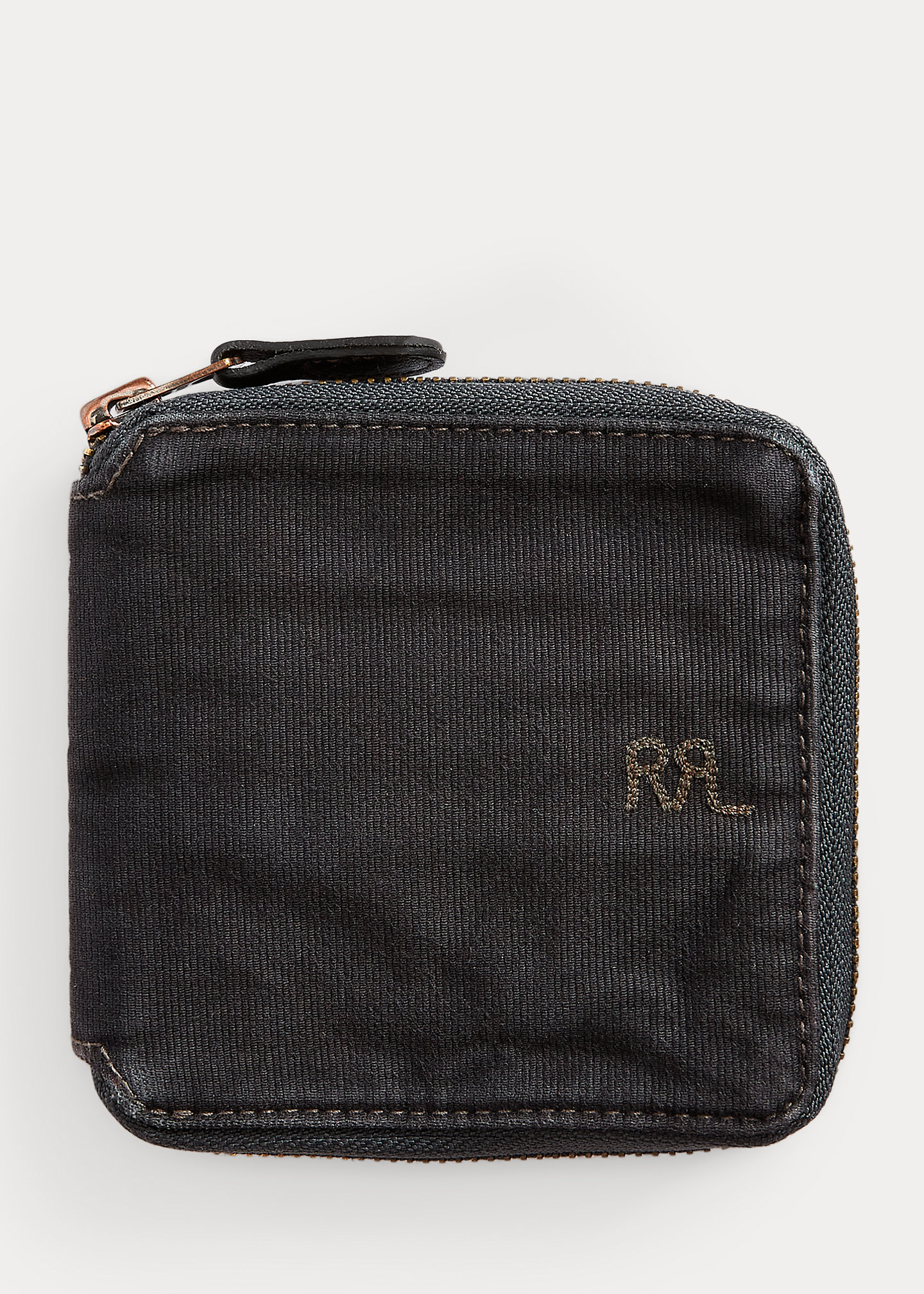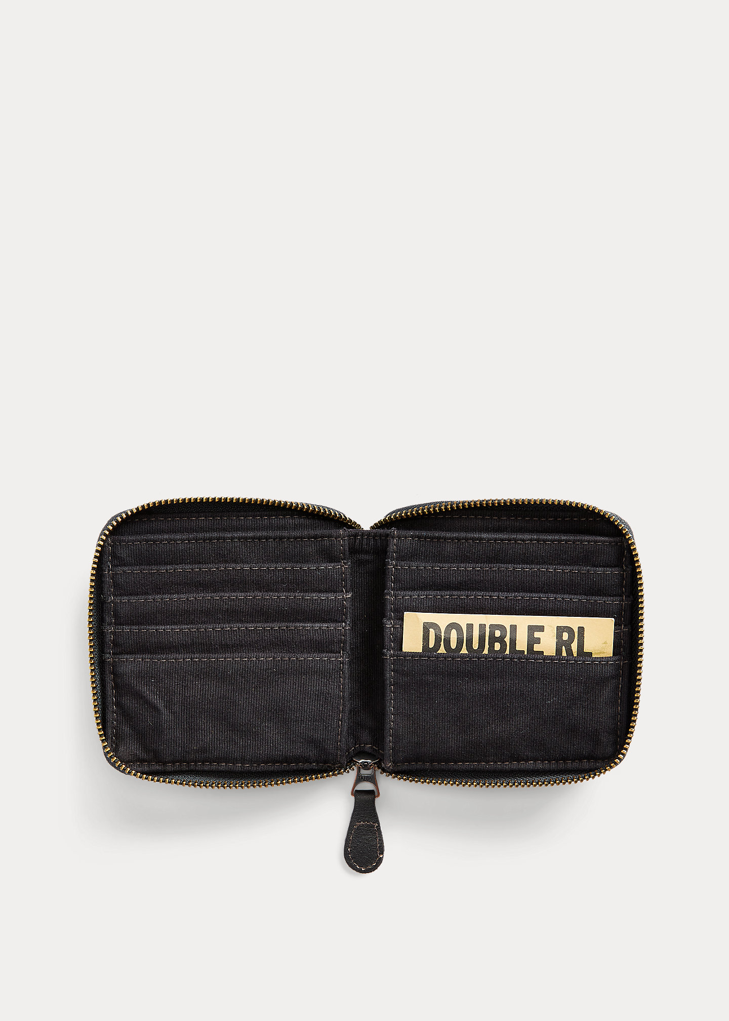 Zip-around closure with a leather zipper pull. Eight card slots, two slip pockets, and a currency pocket at the interior. "RRL" logo embroidered at the front. Card slots lined with poplin. 4¼" H x 4¼" L. Cotton. Imported. Comes in a signature Double RL box.